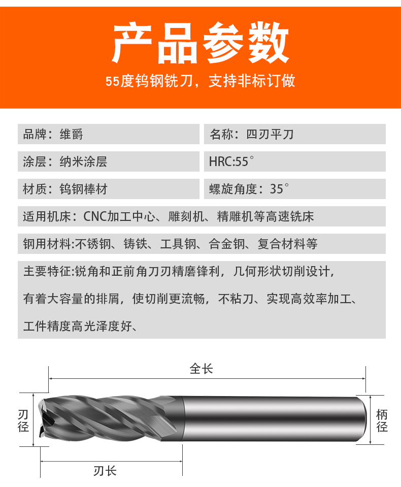 臺(tái)灣進(jìn)口AYKT55度鎢鋼銑刀硬質(zhì)合金涂層鑼刀 CNC數(shù)控平底立銑刀
